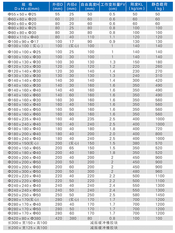 德邦 橡膠彈簧參數(shù)